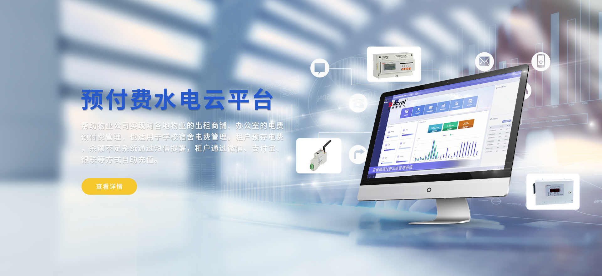 安科瑞提供的解決方案包括Acrel-EIoT能源物聯網云平臺變電所運維云平臺安全用電管理云平臺環(huán)保用電監(jiān)管云平臺智慧消防云平臺能源管理云平臺、工業企業能源管控平臺、遠程預付費云平臺餐飲油煙監(jiān)管云平臺電動汽車/電瓶車充電樁收費管理云平臺、電力監(jiān)控/無線測溫系統、電能質量治理系統、電氣火災監(jiān)控系統消防設備電源監(jiān)控系統防火門監(jiān)控系統應急照明和疏散指示系統、智能照明控制系統、醫用隔離電源絕緣監(jiān)測系統等,幫助用戶實現能源智能化、可視化、精細化管理,提高用能效率和用能安全,為企業節(jié)能降耗和實現能源數字化建設提供數據服務。